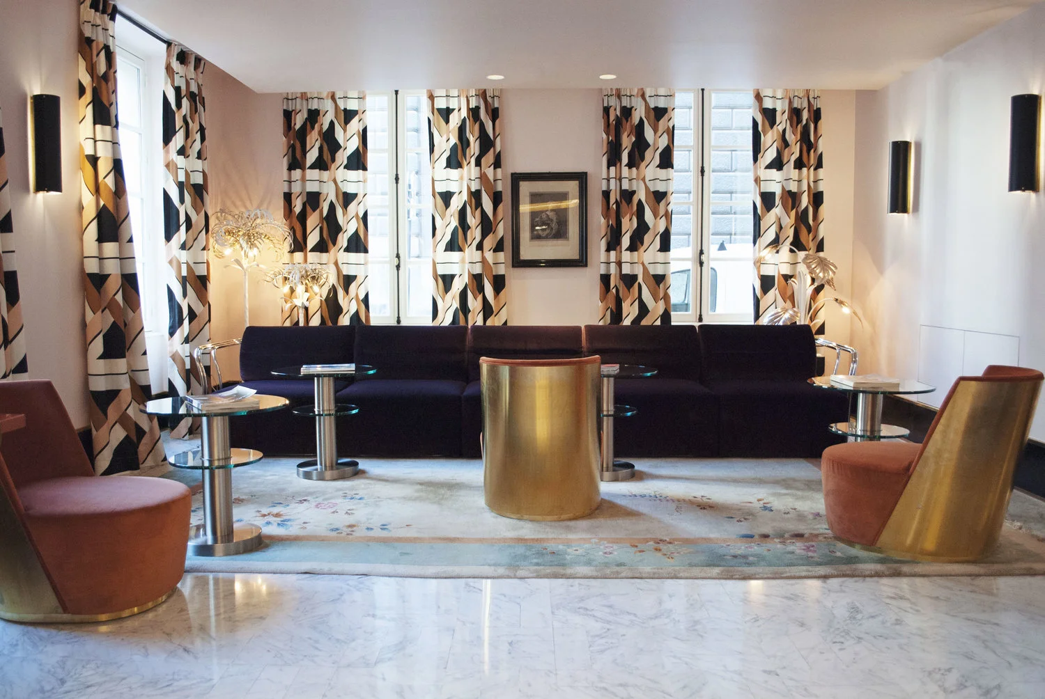 The style of the hotel is extremely unique, a refined and modernist take on Art Deco. Loosing some of the ornateness of this period but maintaining and exploiting use of colour, bold patterns and high gloss wood, marble and other rich material choices.